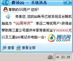圖6:廣告木馬偽裝QQ中獎消息推廣釣魚網站