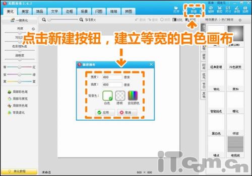 1.啟動軟件后,先來做張白底方形圖章,點擊新建菜單,新建等寬正方形的白色畫布。至于尺寸可以按照需要自定義。