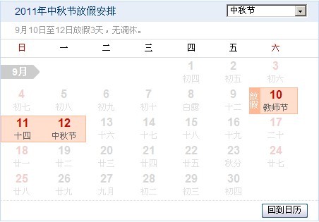 2011中秋節放假安排