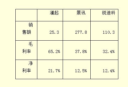 銳迪科是國內芯片設計公司中少有的技術全面、產品廣泛的公司。產品線布局之寬在中國公司中絕對是鳳毛麟角,從FM,PA,Tuner,RF,藍牙到基帶可以說“無所不有”;而針對的市場則是機頂盒、電視機、手機也是“無所不在”。并且在擁有了足夠多的產品之后,在供應商面前的議價能力大大加強,反過來進一步保證了產品在價格戰中的優勢。
