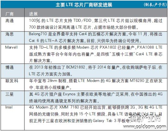 博通也于2013年發(fā)力LTE領(lǐng)域。在2013年初推出了BCM21892,它能夠支持FDD-LTE、TD-LTE、HSPA+、TD-SCDMA、GSM等,將于2014年量產(chǎn)。在收購瑞薩電子后,博通在LTE芯片方面實力加強。