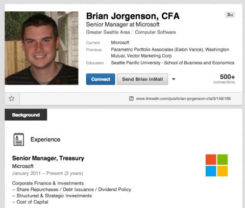 據《西雅圖時報》稱,喬根森曾在微軟供職三年,年薪13萬美元,任財政部門高級經理。他從事內幕交易一事在上個月曝光,隨后被微軟解雇。