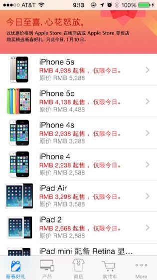 1月10日上午消息,蘋果公司中國在線商店及線下Apple Store實體零售店今日開展特別購物日活動,iPhone、iPad、Mac電腦等全線產品均有不同降價,活動僅限1月10日一天。