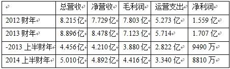 智聯(lián)招聘的財(cái)報(bào)數(shù)據(jù)以截至2012年6月30日的前一財(cái)年、截至2013年6月30日的上一財(cái)年、截至2013年12月31日的本財(cái)年上半財(cái)年為統(tǒng)計(jì)方式,以下簡(jiǎn)稱(chēng)2012財(cái)年、2013財(cái)年、2014上半財(cái)年,單位為元人民幣。