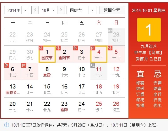 2014國慶節(jié)放假安排