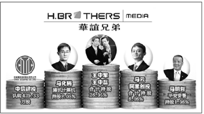 “三馬”合計認購資金為34.93億元,占據36億總募資額的97%。除了“三馬”之外,另有中信建投證券股份有限公司,認購了429.33萬股,出資額為1.066億元。發行完成后,華誼兄弟控股股東王中軍、王中磊合計持股比例將由30.15%降至26.99%,仍持有控股權。騰訊持股上升為11166.80萬股,持股比例為8.08%;馬云和阿里創投持有華誼兄弟同樣約為11166.80萬股,與騰訊并列公司第二大股東;平安資管則以1.98%比例成為公司第三大股東。