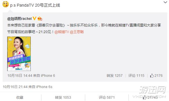 王思聰“熊貓TV”還未上線就已經(jīng)獲得了不少網(wǎng)友的關(guān)注,雖然可能大多數(shù)網(wǎng)友并沒有參與到內(nèi)測之中,但光看早前曝光的明星陣容,網(wǎng)友已經(jīng)表示:老公,跟定你了!而日前,王思聰轉(zhuǎn)發(fā)劉語熙的微博,并且確認PandaTV將會在20號上線!