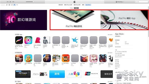 Yesky新聞頻道消息隨著新款12.9英寸iPad Pro平板的上市,蘋果也為App Store進行了更新,并推出了專門為iPad Pro而設的應用專區:“iPad Pro精彩App”和“iPad Pro精品游戲”。