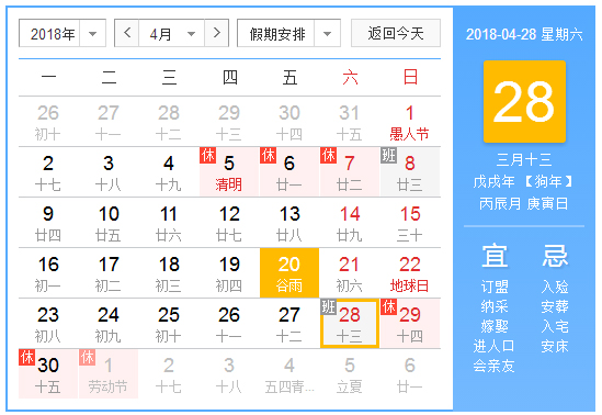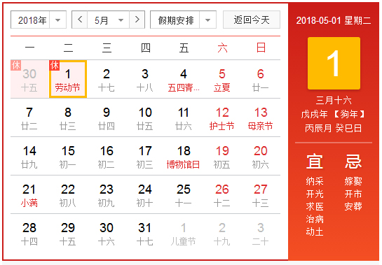 2018年4月29日至5月1日(星期二、“五一”國(guó)際勞動(dòng)節(jié))放假,共3天